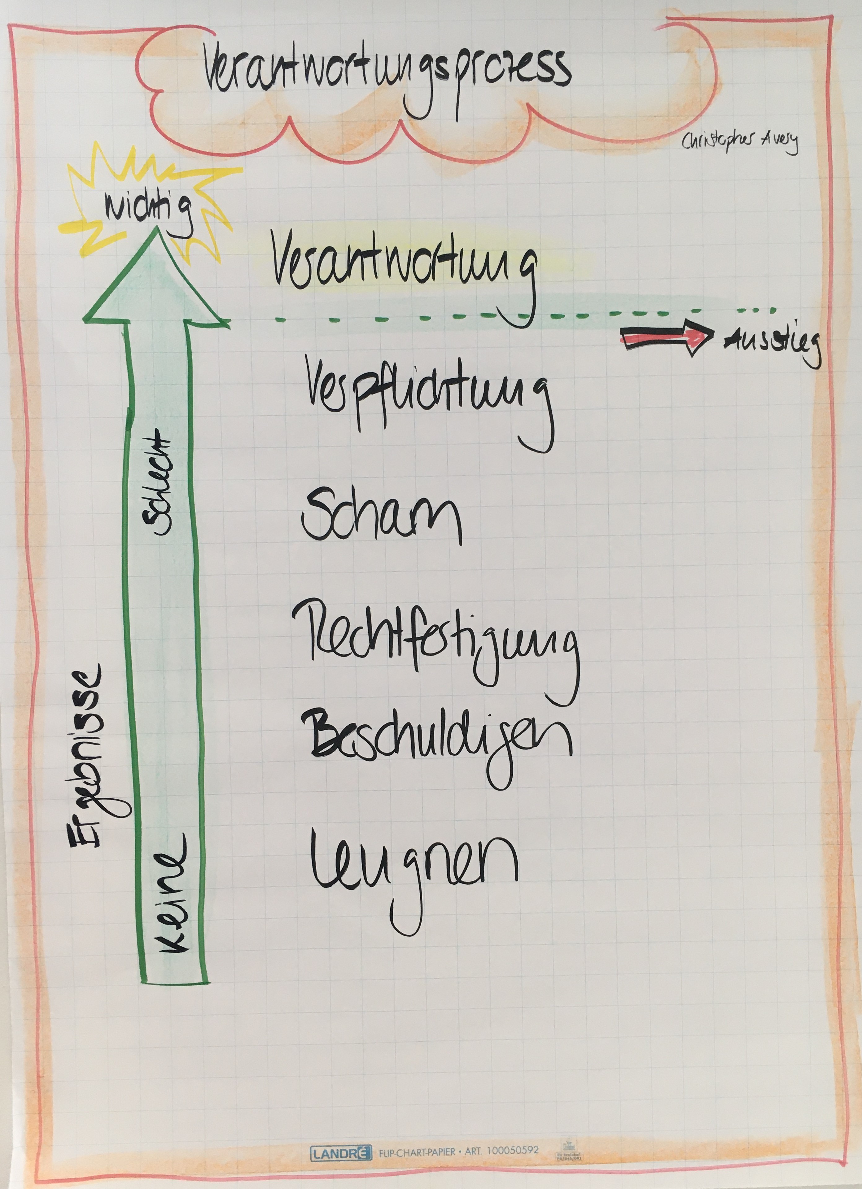 Im Alltag nehmen wir durch unsere Sinnesorgane verschiedene Impulse, Eindrücke und Botschaften wahr. Unser Hirn selektioniert die Eindrücke und produziert Zuschreibungen. Je mehr wir uns unseren Zuschreibungen nach Ursache-Wirkung bewusst sind, desto besser können wir uns selber im Verantwortungsprozess navigieren. Der Responsibility Process nach Christopher Avery bietet dazu eine Anregung zur Reflexion und zur Selbstentwicklung. Er beschreibt die Stationen, wie unser Gehirn Gedanken über Ursache und Wirkung in unserem Hirn verarbeitet und wie wir damit umgehen. Mit uns selber und auch unserem Umfeld.