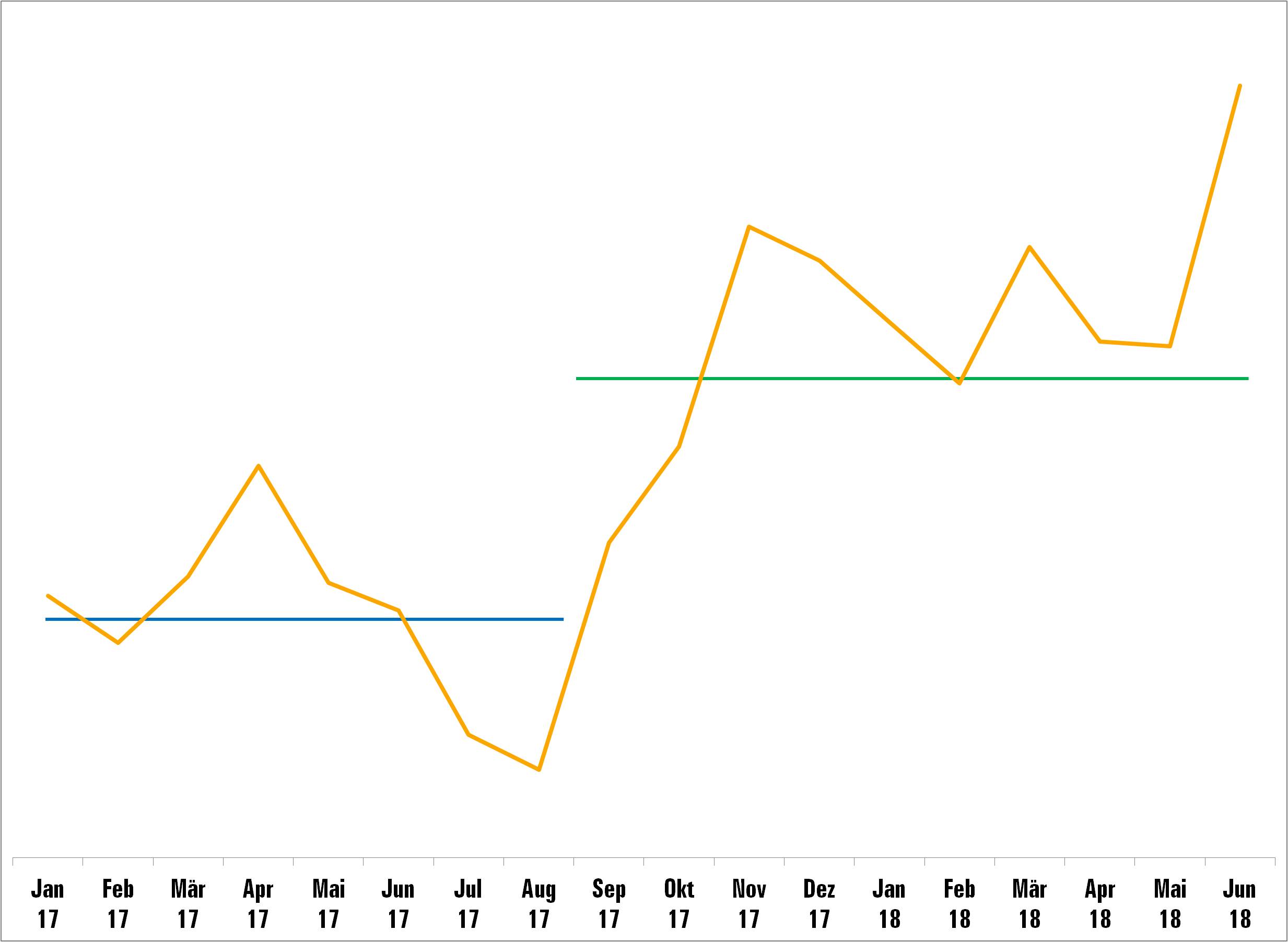 Seit September 2017 ergänzen wir jeden Blogbeitrag mit einem passenden Bild. So fallen die Beiträge bei LinkedIn und Xing mehr auf. Und seit November 2017 verschickt crearium jeweils Ende Monat einen Newsletter. Darin sind die Blogbeiträge nochmals übersichtlich zusammengefasst. Die Statistik über die Website-Besucher zeigt klar, dass die Anzahl der Zugriffe auf www.crearium.ch seit diesen Massnahmen deutlich zugenommen hat. Die durchschnittliche Besucherzahl pro Monat (blaue und grüne Linie) ist seither markant höher.
